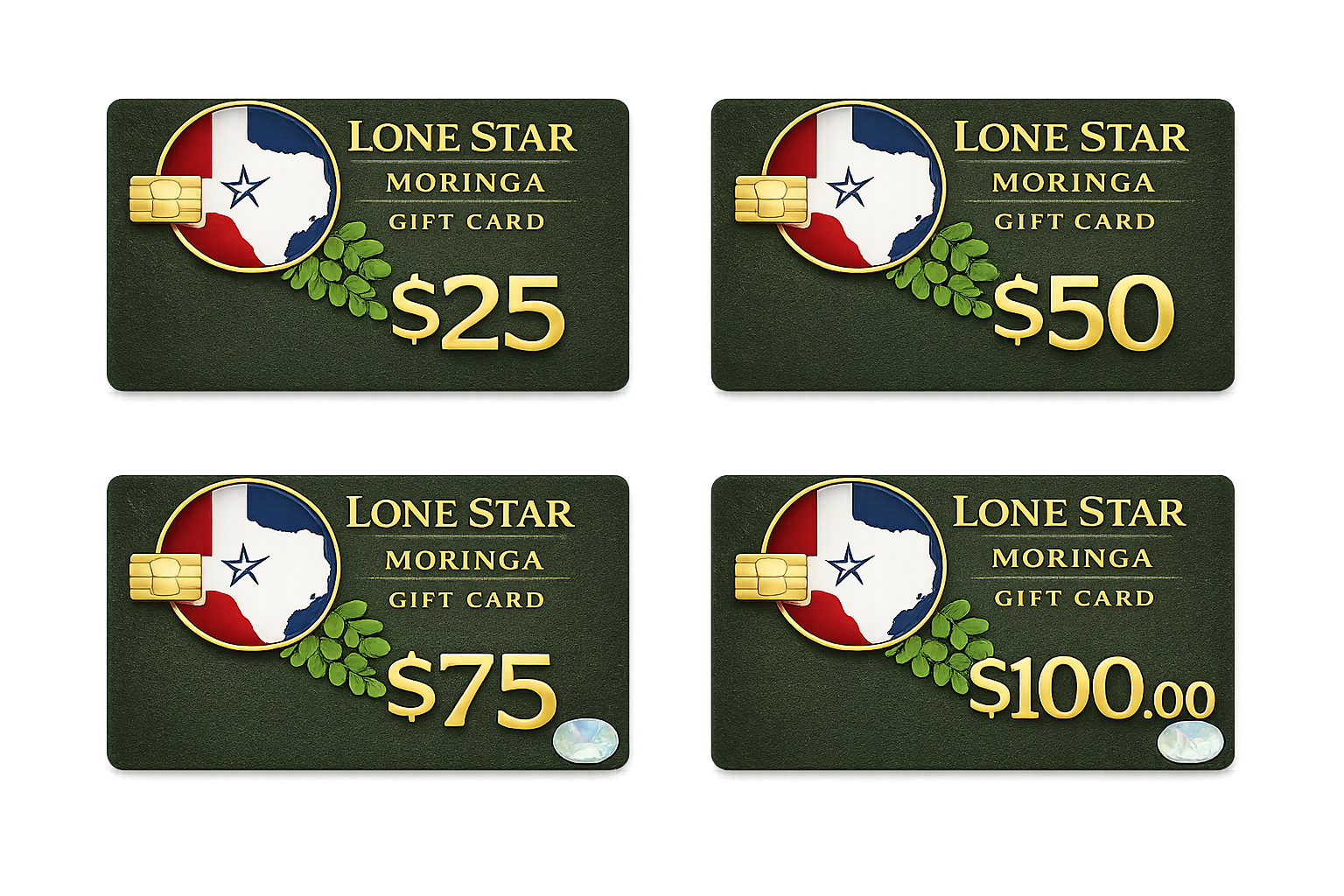 Gift cards are valid for Lone Star Moringa products only and are not redeemable for cash. They cannot be used toward affiliate products or third-party items.